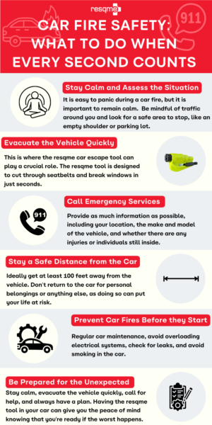 Remember: Stay calm, evacuate the vehicle quickly, call for help, and always have a plan in place. Having the resqme tool in your car can give you the peace of mind knowing that you’re ready if the worst happens.