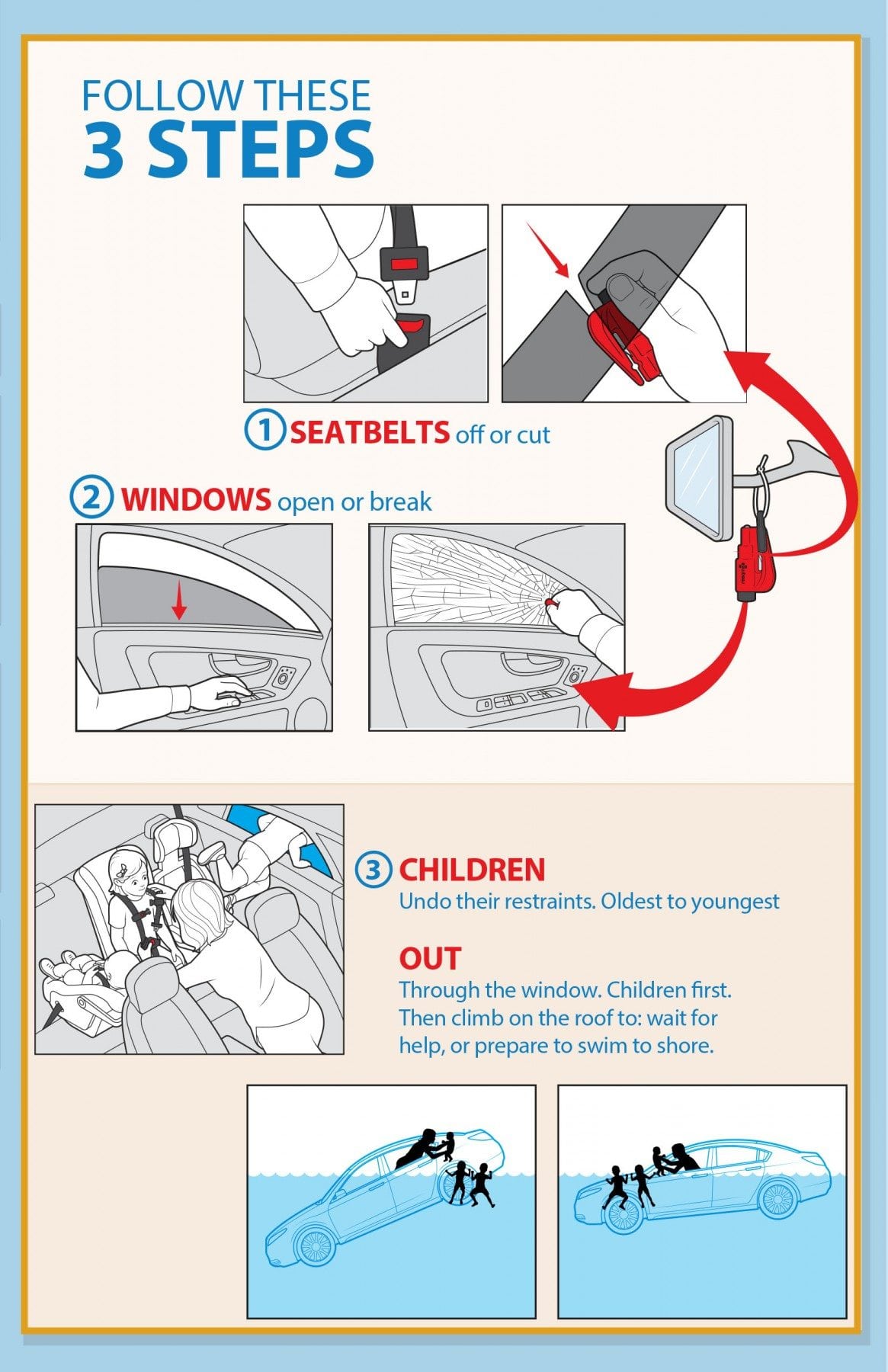 OUT: through the window. Children first. Then climb on the roof to: wait for help, or prepare to swim to shore.