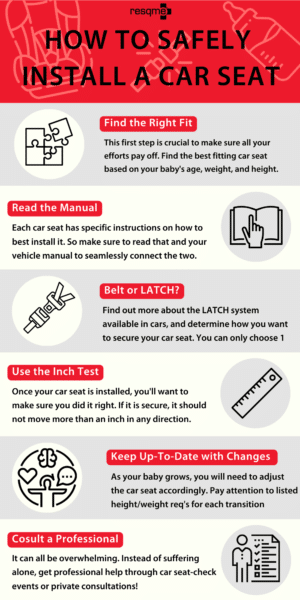 Now that you know some of these helpful tips, it’s time to get to work! First find out which car seat is the best fit for your needs. Then follow the instructions (and of course these steps) to properly install a safe car seat for your baby! And remember, regardless of your efforts, accidents can occur, so keep a resqme® within reach to always stay safe!