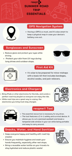 The open road is calling all travelers this summer! Whether you’re tripping to new places in your hometown or venturing across the country, resqme has you covered with ten must-have items for maximum fun and safety on the roads.